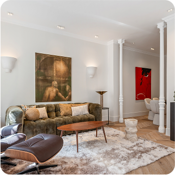 Spacieux salon baigné de lumière naturelle