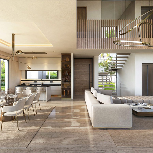 Les villas sont conçues dans un style moderne et ouvert où l'intérieur et l'extérieur se fondent harmonieusement. Chaque maison comprend 4 à 6 chambres et 4 à 5 salles de bains. Les surfaces bâties généreuses vont de 873 m² à 1.058 m² et comprennent de grands espaces de vie, des cuisines ouvertes et des terrasses avec vues panoramiques.